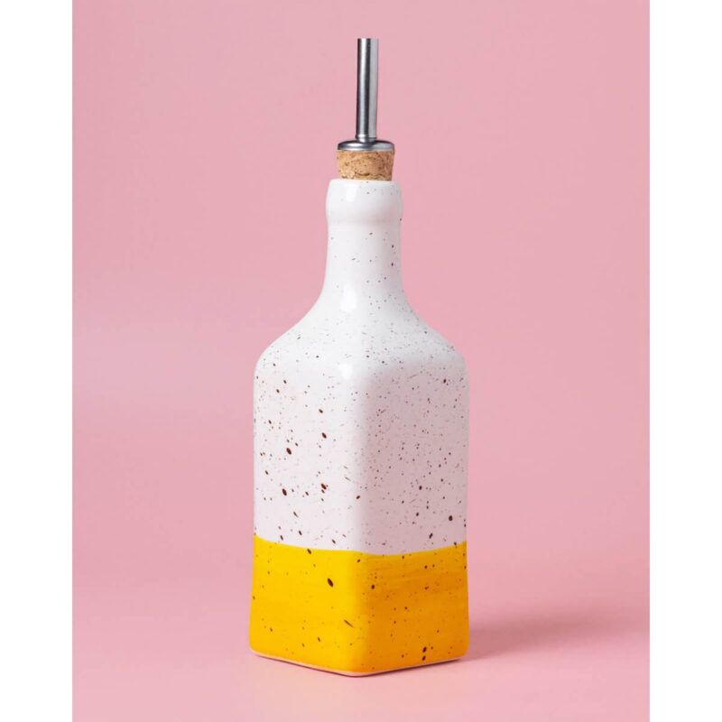 Canela New Ölflasche mit Ausgießer, Oliven Öl Flasche Keramik in Weiß-Gelb 475ml